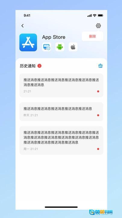查看各应用的历史通知记录,获取不同应用过往的推送消息,并且可以对这些通知执行删除等相关操作。