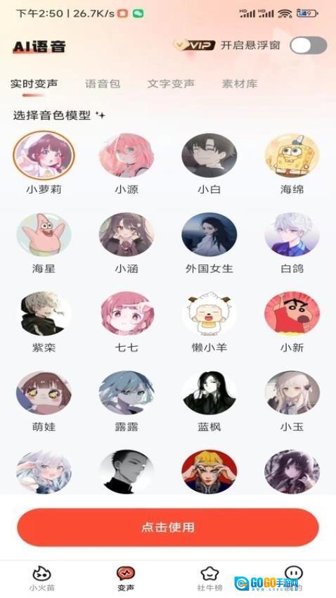 在这里用户就能快速开启个性变声模式,让变声过程变得十分有趣。