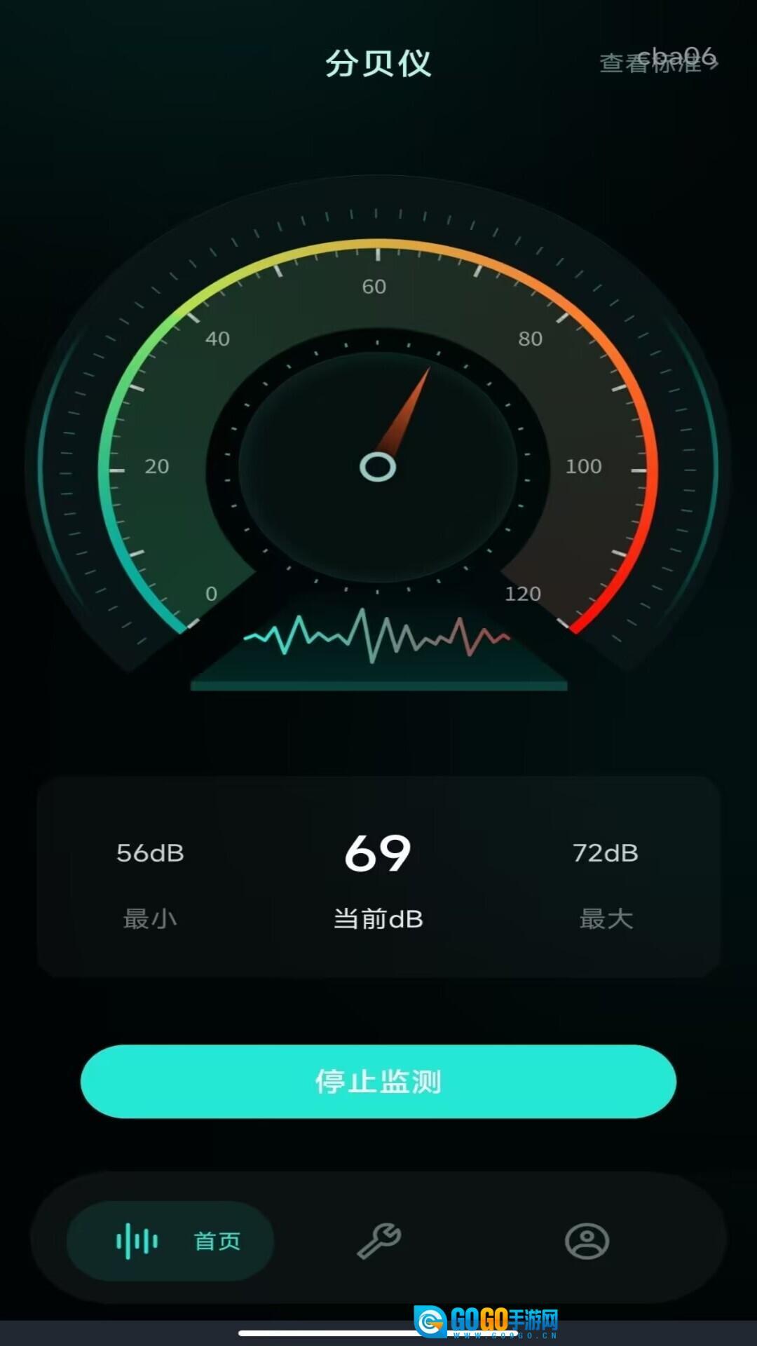 打开首页后,屏幕会实时呈现当前环境的分贝数值,让噪音水平得到直观体现。