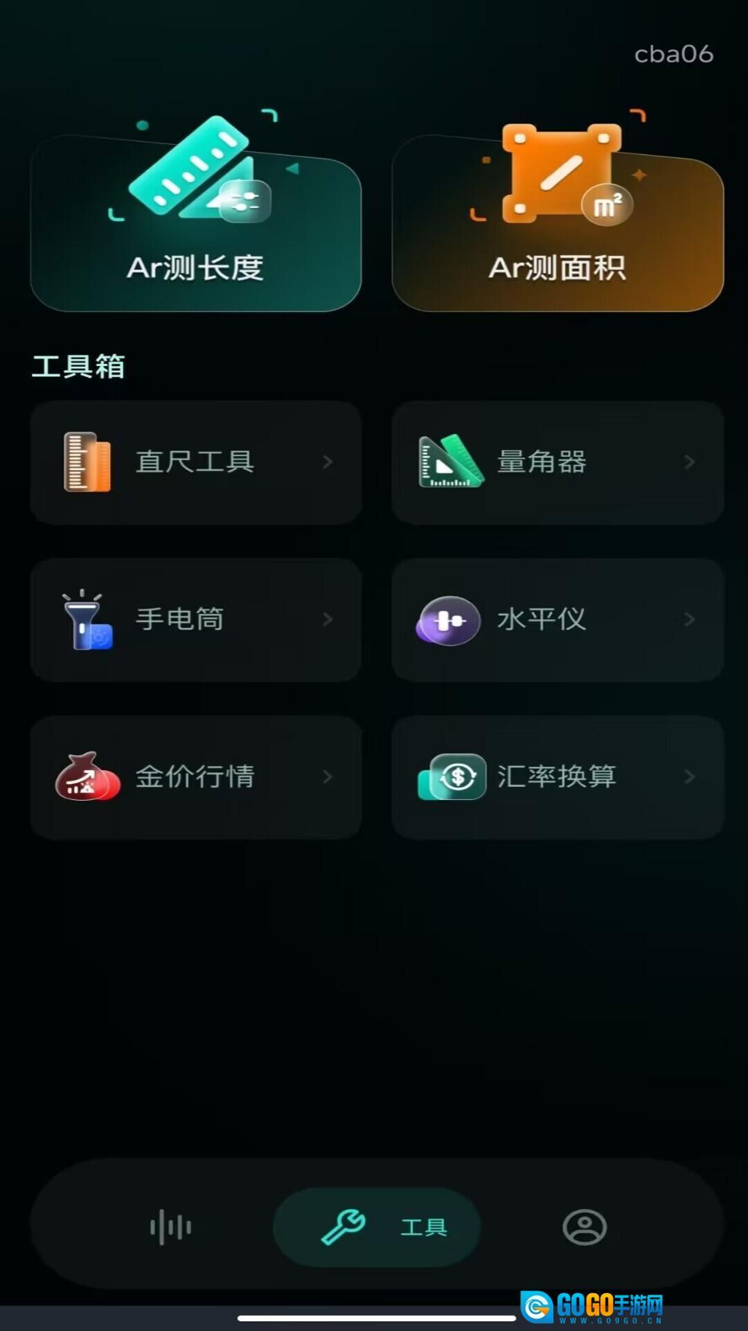 4、工具板块整合了多种实用功能,涵盖长度与面积测量、手电筒、水平仪,还有金价行情查询及汇率换算功能。