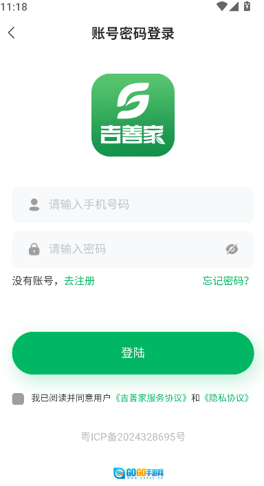 1、启动吉善家软件后,找到并点击注册入口,进入账号注册界面着手创建新账号。