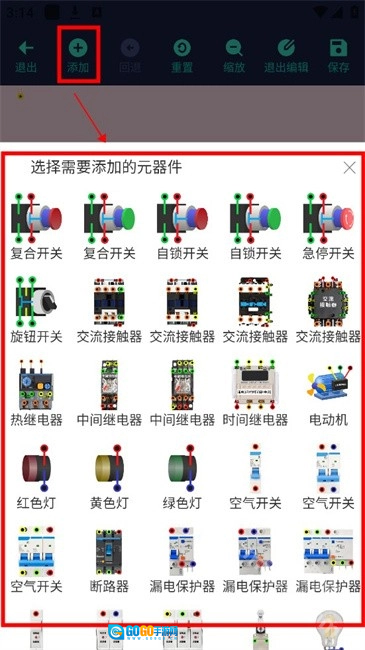 2、丰富的元件库:涵盖灯泡、开关、交流接触器、热继电器、中间继电器、电机等多种电路元件,用户可根据实际需求自由选用。