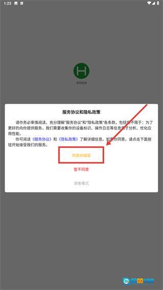 1、当星辰商城弹出服务协议窗口时,点击【同意并接受】按钮,完成协议确认后即可进入应用的主功能界面。