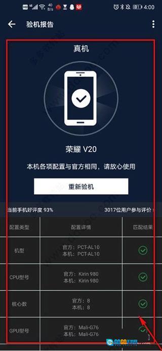 3、稍等片刻,便会出现具体的验机报告。