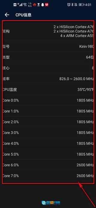 3、界面跳转,即可查看CPU信息。