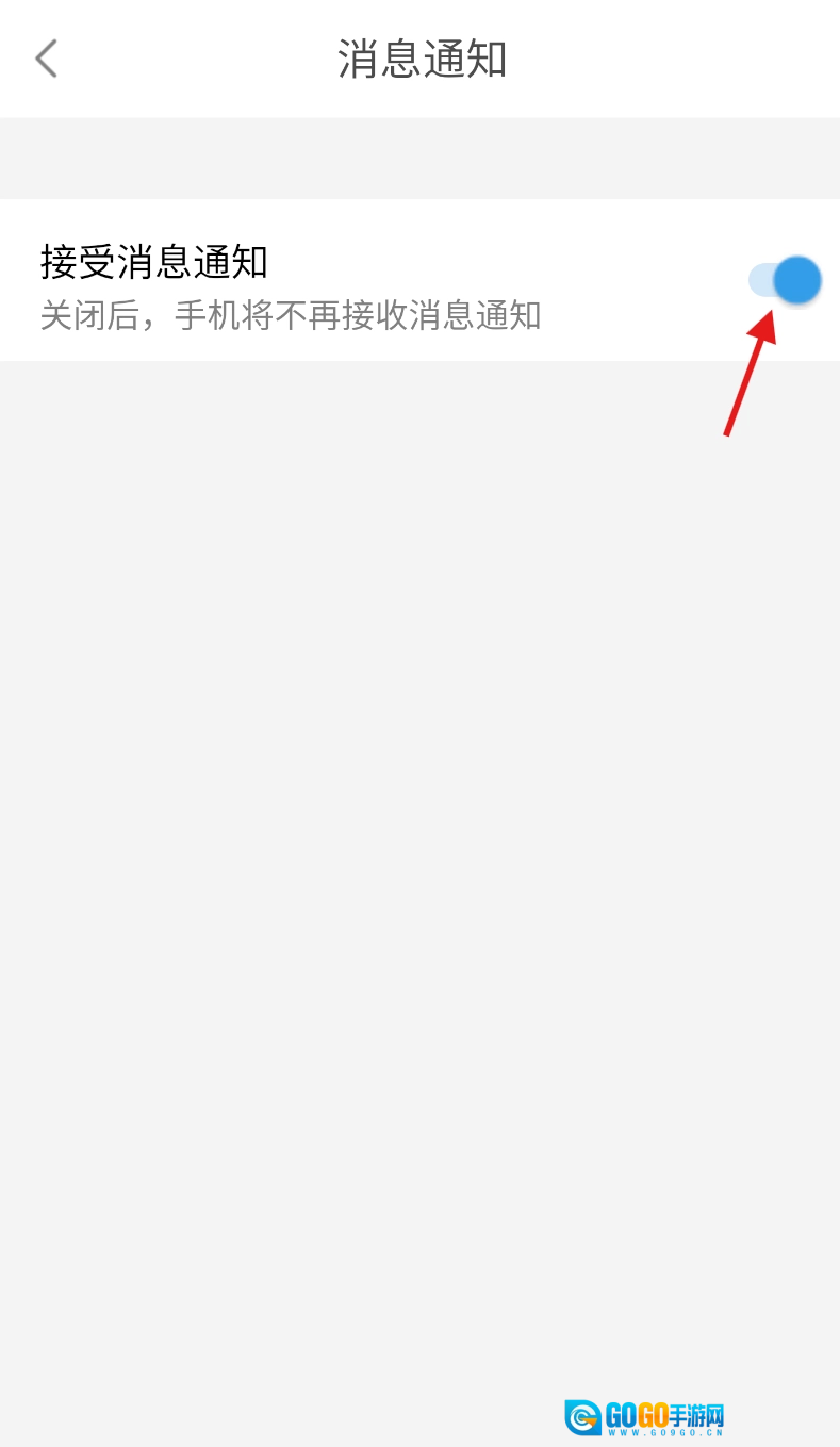 在消息通知页面,找到“接受消息通知”的开关按钮,点击关闭就能停止接收消息了。