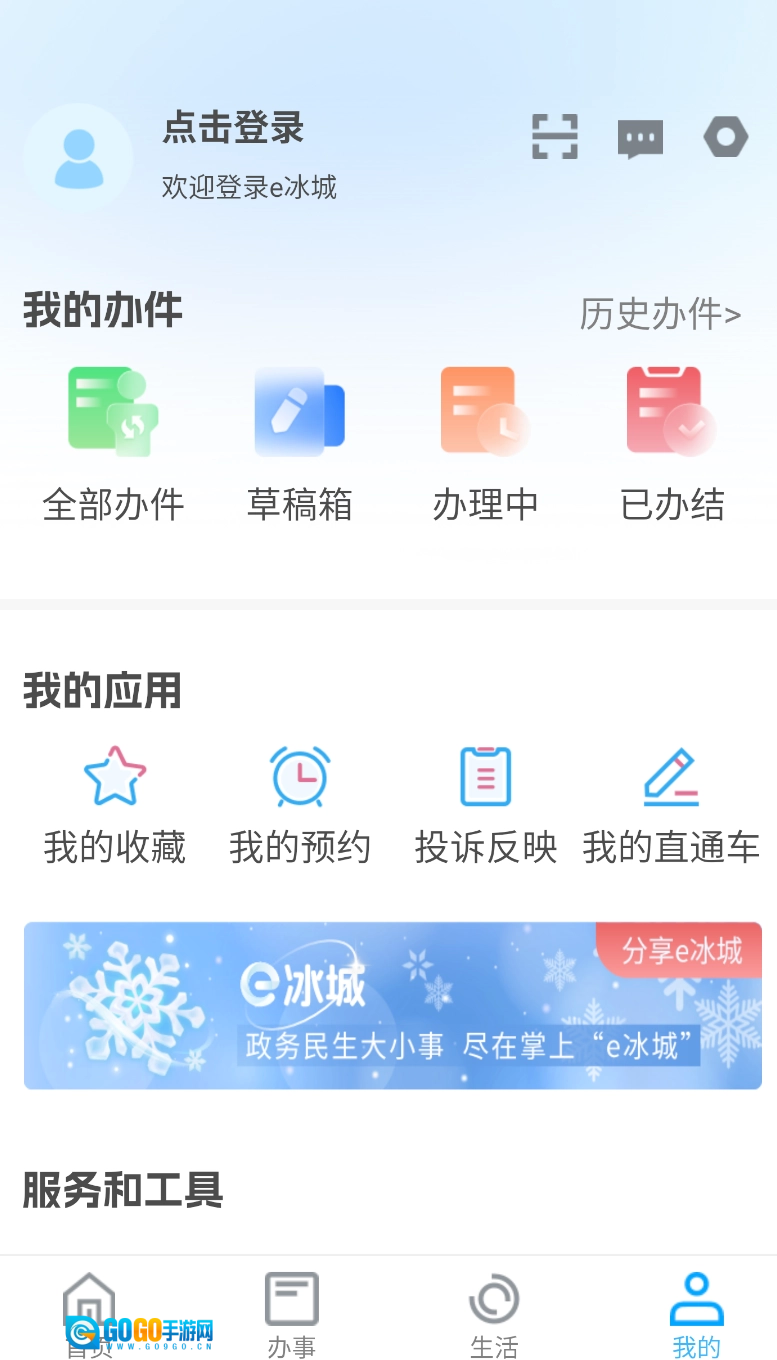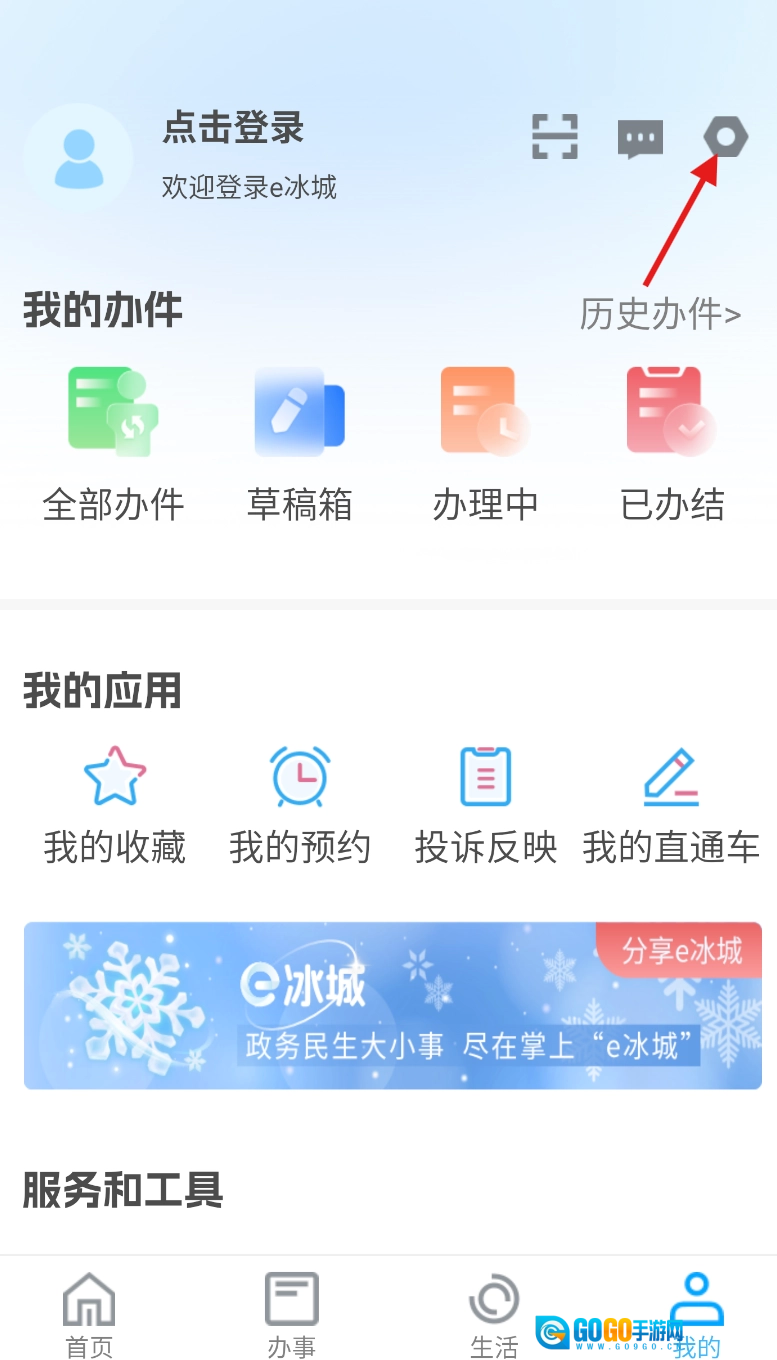 打开e冰城APP进入首页后,找到界面右下角的“我的”选项,轻点该选项即可进入个人专属页面。