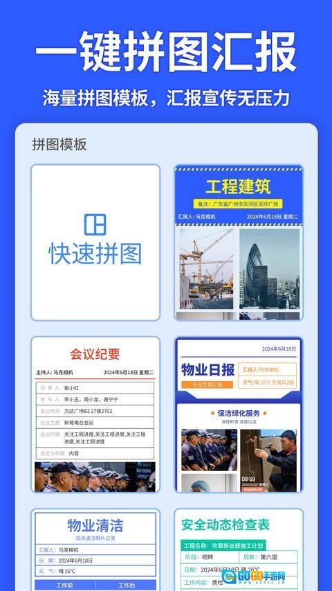 一键拼图功能,能轻松汇总大量带有水印itmop的照片,让汇报不再烦恼。此外,还支持一键生成视频形式的工作汇报,助力更直观地展示工作内容。