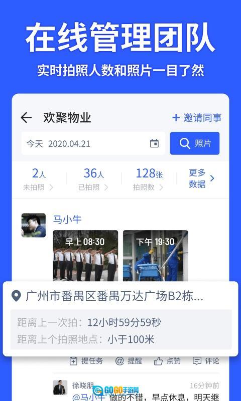 拍照自动加打卡水印,时间地点不可篡改。