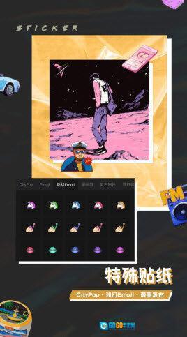 3、拥有最具特色的贴纸,还具备颜色剔除、涂鸦文字、颜色调色等丰富功能;