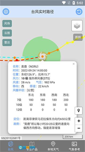 2、多维度数据呈现:可查询卫星云图、风场分布、雷达图等专业数据,同时支持普通地图与卫星云图双模式切换,能直观呈现台风的形态及影响范围,从而满足不同场景下的查看需求。