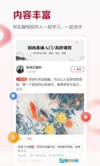 及象教育作为专业的书法学习平台,为用户准备了丰富的教学资源,助力大家借助软件更高效地练习书法。平台不仅有众多专家开设直播课程进行专业教学,还提供了多样化的互动形式,方便用户在学习过程中积极参与交流。此外,平台涵盖了丰富的课程内容,能满足不同阶段用户的学习需求,帮助大家更系统地提升书法水平。软件内还设有广场社区板块,用户可以在这里分享自己的书法作品,与其他书法爱好者相互学习、交流心得。
