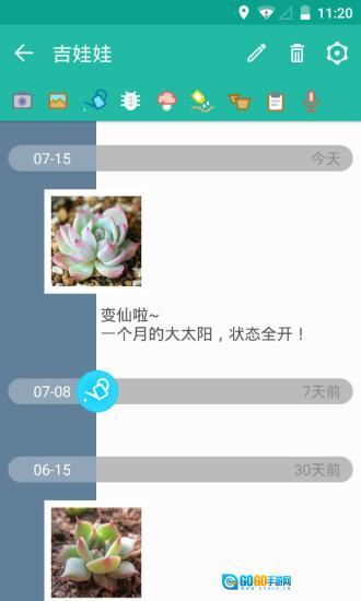 3. 成长记录:支持以图片、文字、视频等多种形式记录多肉植物的成长瞬间,系统会自动生成对应的成长日记,方便用户随时回顾其完整的成长过程。