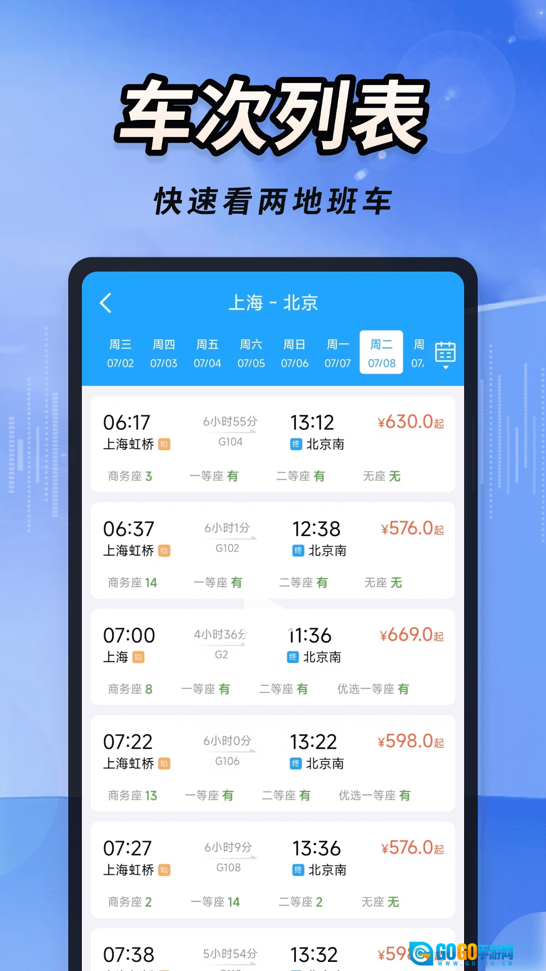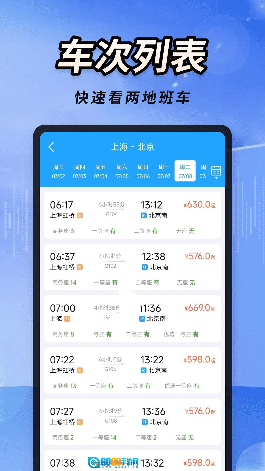 您只需输入出发地和目的地,系统便会自动生成往返车次的列表,所有班次信息都能清晰地呈现出来。