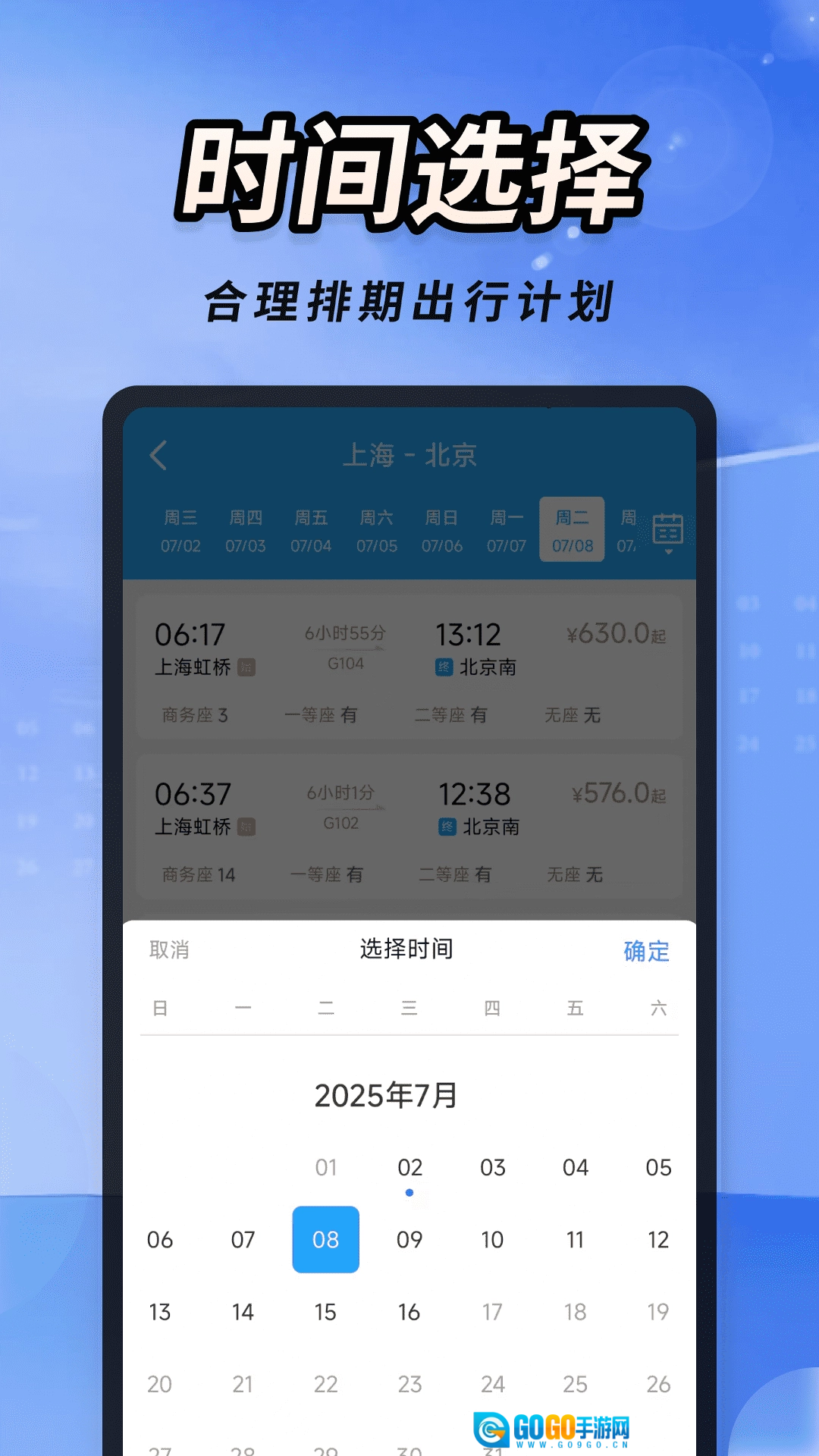 提供时段筛选功能,用户能依据自身日程安排灵活选定出发时间,系统会智能推荐科学合理的行程方案。