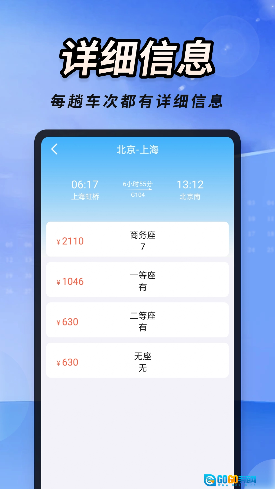 采用轻量化设计理念,操作界面简洁直观、运行流畅,无论是临时查询车票、跨城日常通勤,还是长途旅行规划,都能轻松完成。