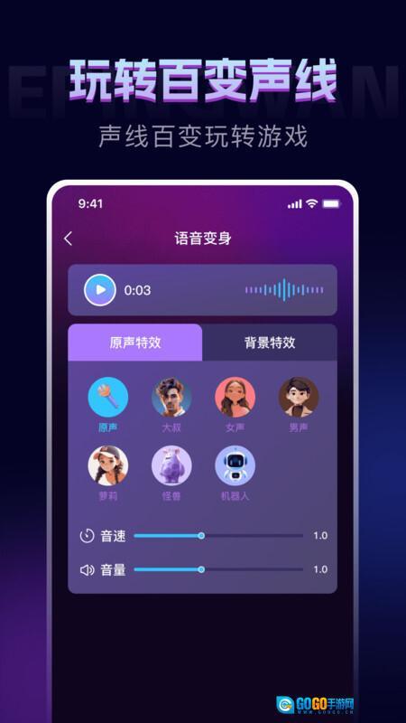 3、语音社交的必备神器,操作便捷度让人惊喜,只需轻松一点,就能即刻开启变声之旅,让无聊对话成为过去。