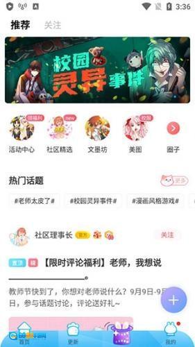 5、切换到漫画台,这里是有关该软件的热门话题的,还包括美图、社区精选等。