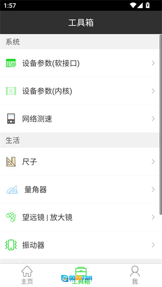 2、点击下方的工具箱,这里面涵盖了系统、生活等不同类别的工具;