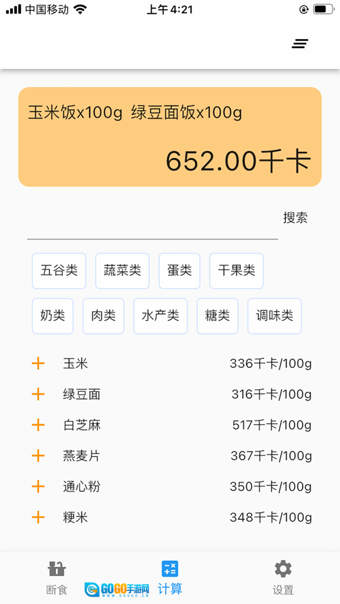 你可以通过搜索食物的名称来查看相关的热量数据。