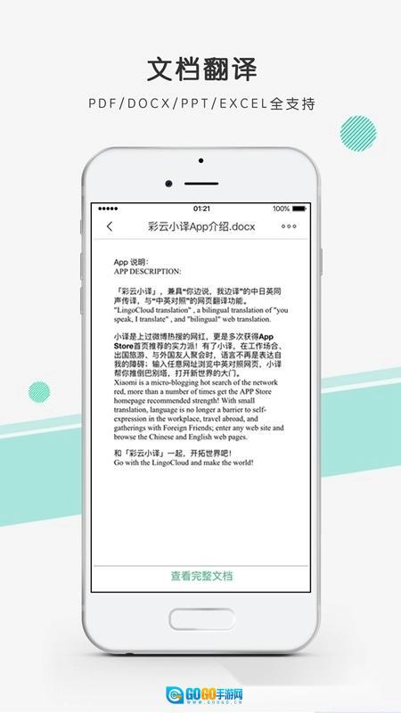 彩云小译2025最新版本是一款专业的手机翻译应用,具备中日英同声传译、网页翻译、文档翻译、横屏翻译等丰富功能,可支持pdf、docx、doc等多种格式的文档翻译,欢迎免费使用彩云小译!