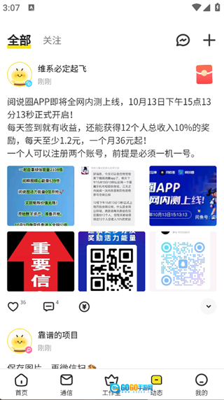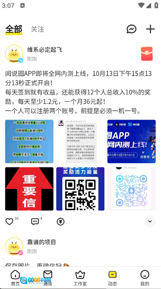 3. 点击页面底部的“动态”选项,就能查看其他用户发布的动态内容。