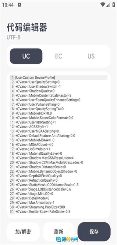 可以随时调整游戏帧数设置,修改后立即生效,同时手机玩游戏时的发热量和耗电量也会随之改变 2、能够随时在线生成各类出色的画质效果,让你的游戏画面环境瞬间变得令人眼前一亮