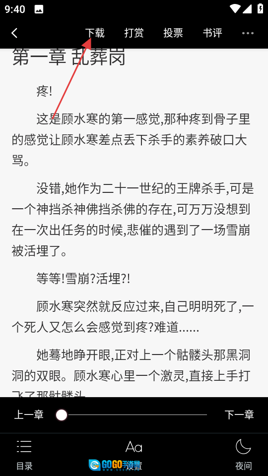 3、进入阅读页面后,即可开始阅读内容,点击屏幕可唤起菜单。