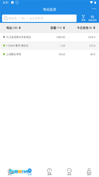 4、监控电站发电状况:进入检测界面,可查看各电站的容量信息及每日发电量数据。