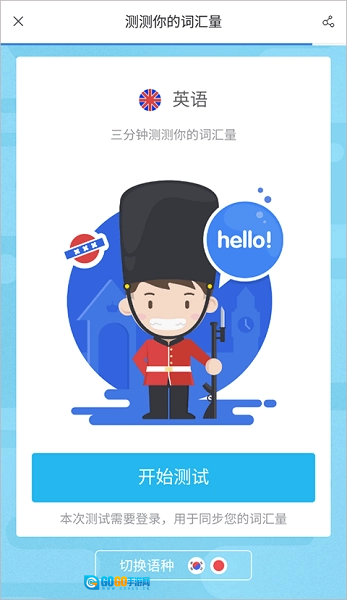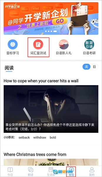 在发现界面点击“词汇量测试”。