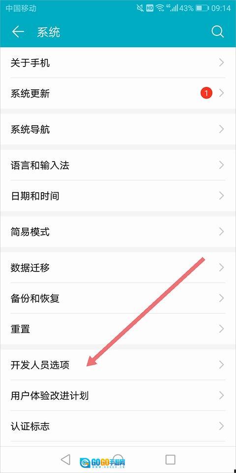 用户的开发者模式开启之后可以在的设置中找到系统