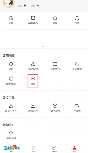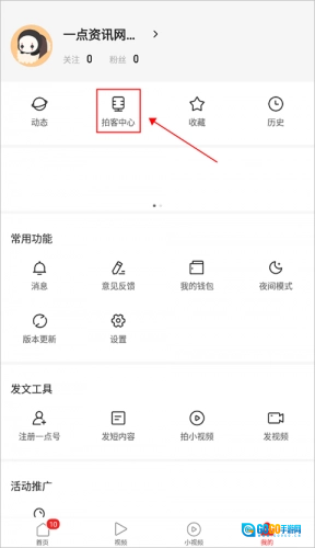 1、同样是在一点资讯的“我的”界面,点击最上方的“拍客中心”选项