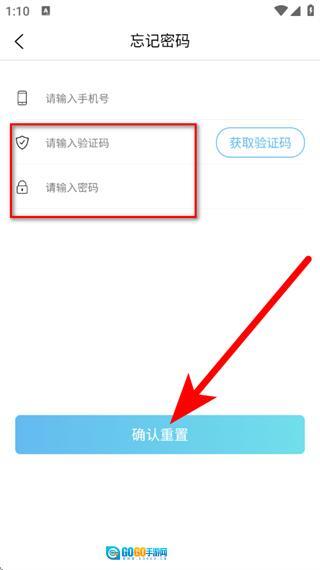 4、在验证码输入框中输入验证码,接着在新密码输入框中输入新密码,之后点击确认重置按钮。