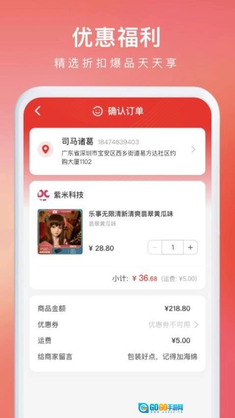 首次注册该软件的用户可享受新人专享优惠,用于购物时抵扣使用。