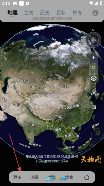 进入地理相关页面后,点击左下角的“更多”按钮,就能展开更多功能选项。