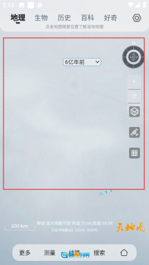 3、进入远古地球页面后,不仅能看到该时期的地球画面,还可以通过页面上方的下拉框选择不同时间,从而查看地球在不同时期的样貌。
