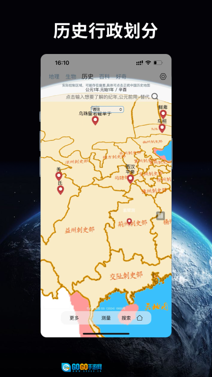 1、地图类型融合:创新性地将三维地理地图与不同时期的历史地图相结合,打破传统单一地图形式的局限,让用户既能直观查看当下的地理风貌,也能便捷回溯过往的历史地图,从而获得跨越时空维度的地图体验。
