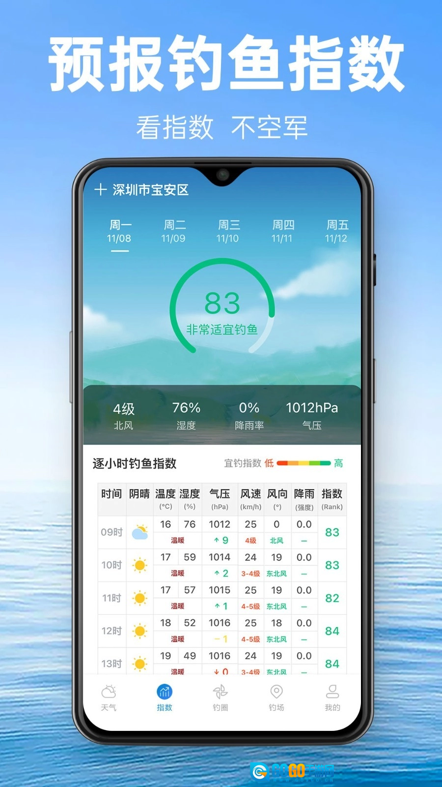 提供更准确钓鱼天气指数;
