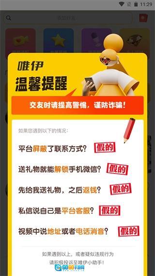 首先用户登录应用后就会弹出提示框,提示用户平台没有屏蔽对方的联系方式,如果对方没有提供微信联系方式那就没有,需要和对方进一步沟通才可以。还有一条特别重要:不要相信只要送礼品就可以要到对方微信,这一条平台是重点强调的。
