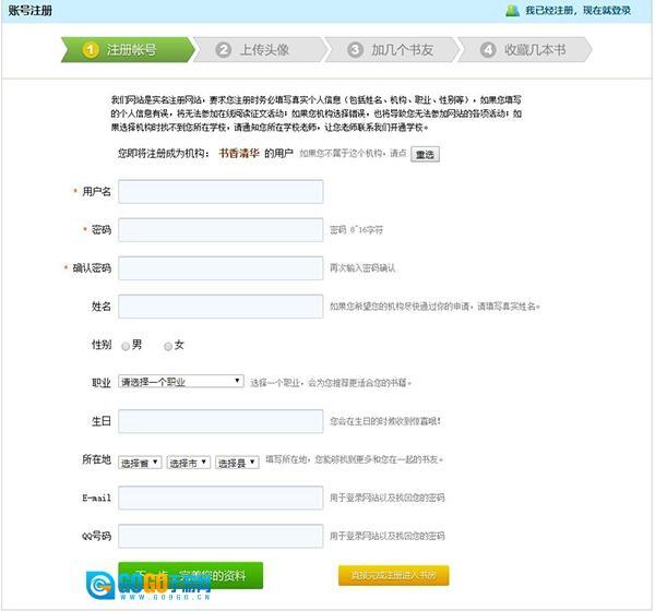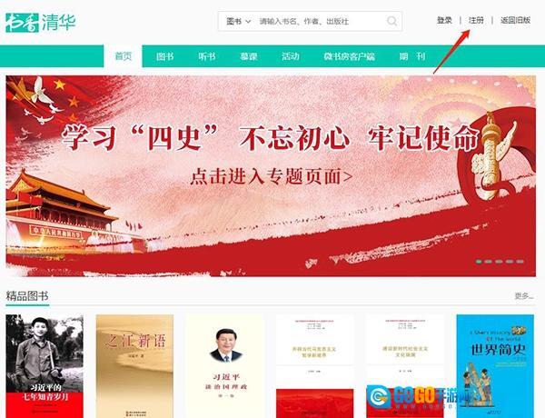 比如选择清华大学,页面会跳转至书香清华,之后点击右上角的注册按钮即可。