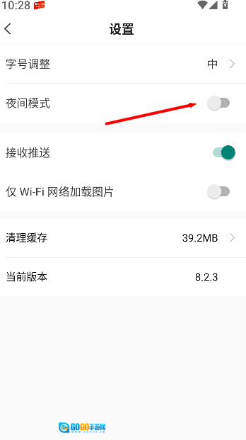 3、进入设置页面后,找到夜间模式的开关选项,打开该开关就能切换到夜间显示效果,这样可以让夜间阅读时的体验更舒适。