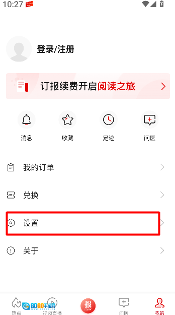 1、启动《环球时报健康》应用,在首页点击右下角的“我的”选项,进入个人功能页面,找到并查看账号及常用设置的入口。