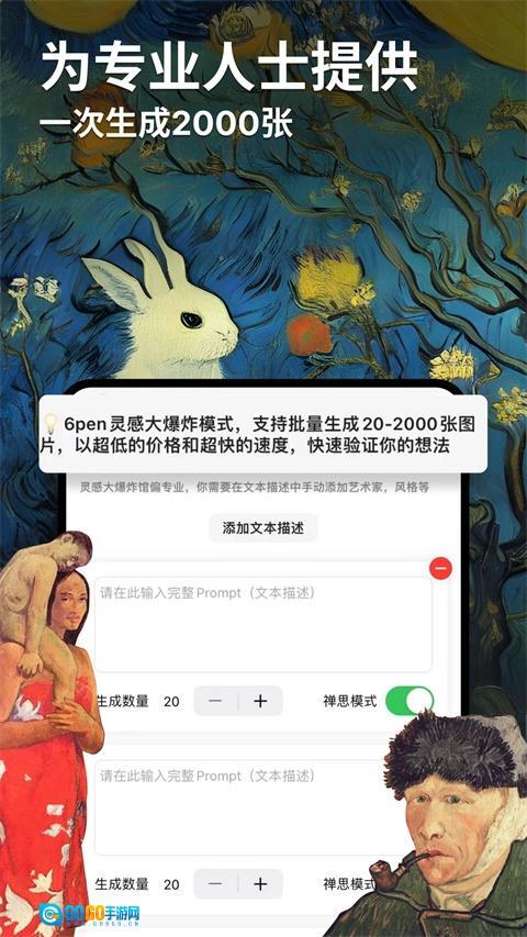 6pen art是一款AI艺术创作软件,它能够根据用户输入的文字描述自动生成图像。用户只需提供包含画面内容与风格的文字信息,6pen art就能将其转化为精美的绘画作品。即使是没有绘画基础的人,也可以借助它轻松创作出独具特色的艺术品。此外,6pen art拥有多样化的模型,并且用户无需担心版权方面的问题。