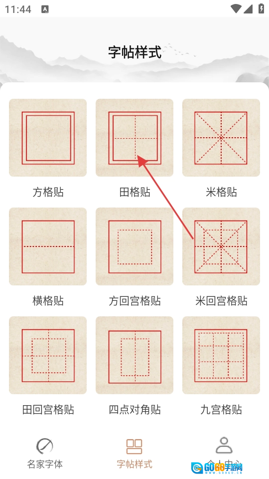 在字帖样式选择页面,挑选【田格贴】样式后,即可进入字帖样式编辑页面。