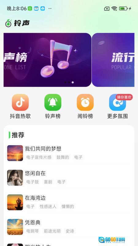 1.在你的铃声的榜单之中,发现最为优质的铃声资源