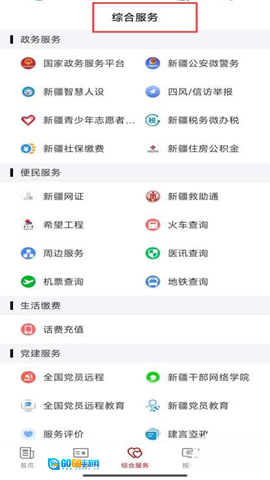 2、在客户端底部的导航栏中,点击“综合服务”这一选项,页面便会跳转至汇聚了政务、便民等各类服务的聚合页面。