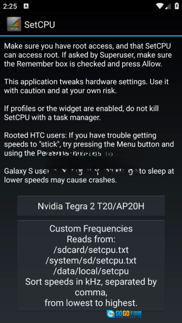 用户能够借助这款程序调整自己手机的CPU运行频率,手动对手机的运行频率进行控制。