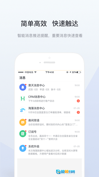 通讯录、即时沟通、客户跟进等功能。智慧型企业,商机自然而至。