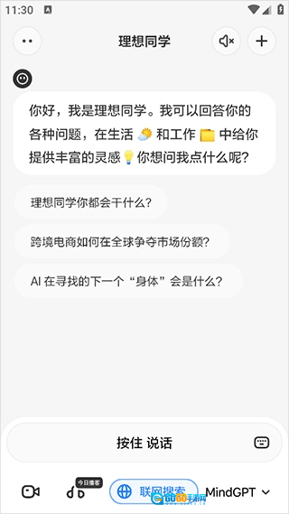4. 我们可以开启语音功能与理想同学进行语音对话。