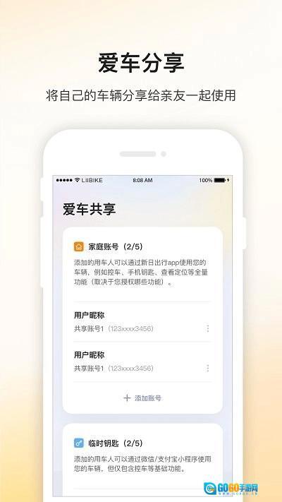 爱车共享功能:用户能够把自己的车辆授权给亲朋好友使用,还可以对使用权限和时间段进行设置。